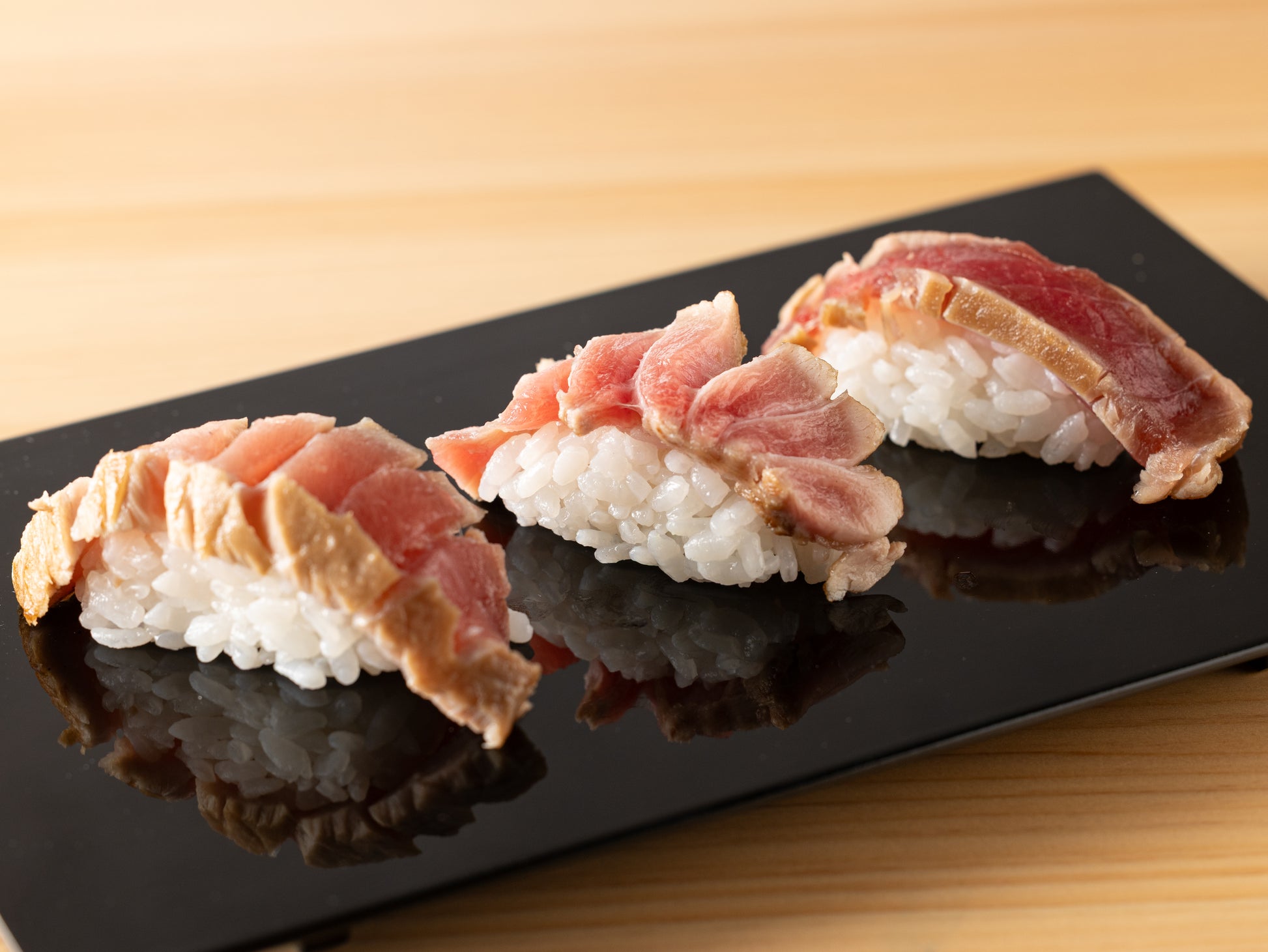 ・インドマグロ大トロ:とろける脂の旨みと芳ばしい藁の香りが重なる、至福のひと口。